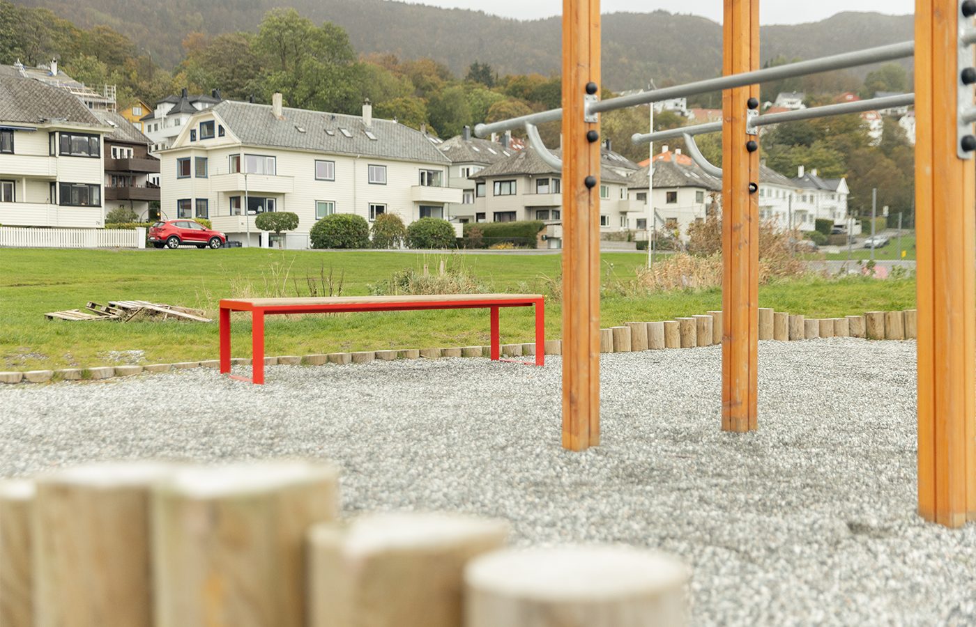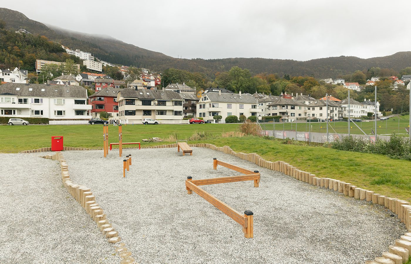 Prosjektet på Nymark i Bergen har forvandlet et tidligere asfaltlagt helikopterfelt til et grønt og inkluderende parkområde. Som en utvidelse av det eksisterende grøntdraget rundt idrettsanlegget har det nye parkområdet fått en mykere overgang mellom bane og park – et sted hvor lek, aktivitet og opphold går hånd i hånd.